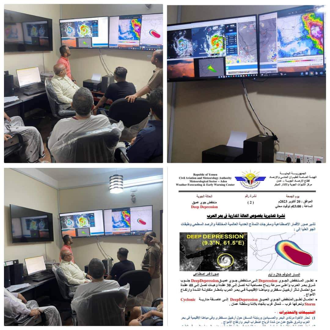 يتابع قطاع الأرصاد الحالة المدارية المتكونة في بحر العرب على مدار الساعة ويقوم بإصدار النشرات التحذيرية وتوزيعها على الجهات ذات العلاقة لأخذ الاحتياطات والتدابير اللازمة في المناطق المتوقع تأثرها بهذه الحالة وذلك للحد من مخاطر الكوارث المتوقعة .تهيب الهيئة العامة للطيران المدني والارصاد بالسادة المواطنين متابعة النشرات الجوية الرسمية الصادرة عن قطاع الأرصاد الجوية.