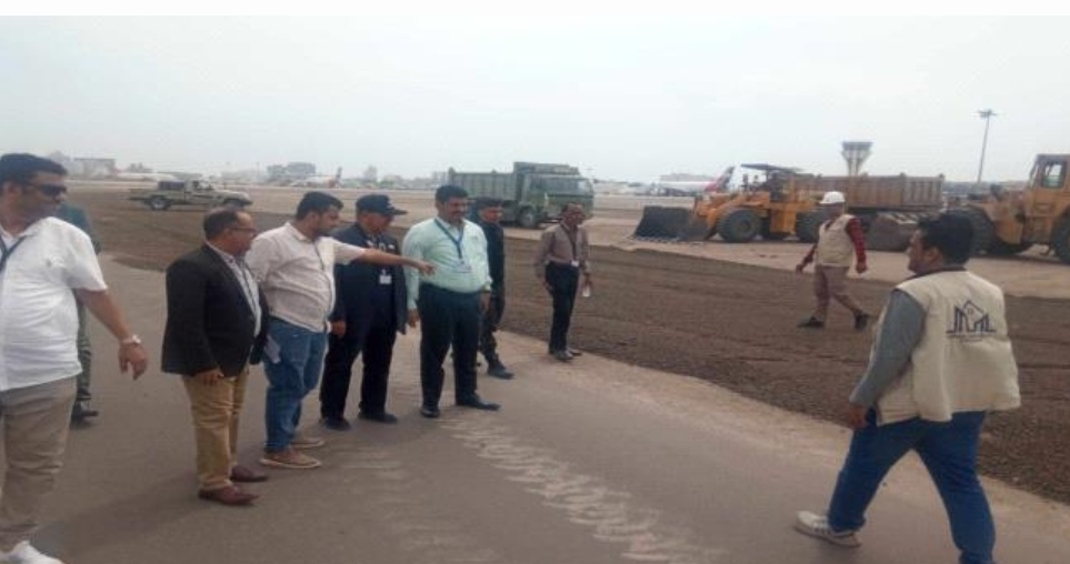 تفقد وكيل الهيئة المهندس محمد ناشر ،صباح اليوم أعمال تسوية منطقة السلامة حول ممر هبوط واقلاع الطائرات بمرسى مطار عدن الدولي.