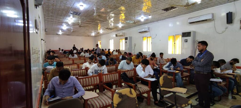 تم اليوم الأربعاء امتحان عدد 440 شاب في كليه التربية بخور مكسر -عدن للشباب المتقدمين للوظائف في الهيئة العامة للطيران المدني والارصاد عدن في مجال : اخصائي ارصاد جوية مهندسين أجهزة ارصاد جوية التي قدمتها الهيئة لإتاحة الفرصة أمام الخريجين الجامعيين الذين لم تتجاوز أعمارهم خمسه وثلاثين عاماً لشغل وظائف في مجال الأرصاد الجوية وقد تقدم للامتحانات الأولية الشباب الخريجين في قاعات كلية التربية بعدن ويتم فرز المتقدمين للوظائف بحسب الشروط العامة التي قدمتها الهيئة العامة للطيران المدني والارصاد -عدن في إعلان طلب الوظائف مطلع الشهر الجاري وتم العمل عليها لأكثر من شهر.بالتنسيق بين كلية اللغات والترجمة بجامعة عدن، والهيئة العامة للطيران المدني والإرصاد، التي أُجريت صباح اليوم امتحانات المفاضلة للمتقدمين لوظائف الهيئة العامة للطيران المدني والإرصاد عدن.وقد تفقد عميد كلية اللغات والترجمة: أ.د. جمال محمد الجعدني، ومعه الدكتور: صالح علي المرزقي، مدير عام التخطيط الاستراتيجي وتدقيق الجودة بالهيئة العامة للطيران المدني والإرصاد، القاعات الامتحانية ووجها كلمةً إرشادية للمتقدمين، حثَّا فيها المتقدمين على التحلي بروح المنافسة، والالتزام بالضوابط الامتحانية.وكانت لجنة المراقبة والتقييم مكونة من: أ.د. جمال محمد الجعدني، أ.د. مهدي أحمد دبان، أ. مشارك د. جمال علي قشاش ، أ. مساعد د. محمد على البدري، حافظ مهيوب سيف ، إنجي أحمد صالح عباد، بالتعاون مع رئيس اللجان الفرعية للفرز ورفع الكشوفات والاشراف على سير الامتحانات علوي العبدلي مستشار قطاع الارصاد والاخ وكيل قطاع الارصاد الجوي شكيب قاسم الطيب والأخ احمد النايف مدير المحطات بالهيئة وفريق من قطاع الأرصاد وأمن الطيران ونقابة مطار عدن الدولي.حضر الامتحانات رئيس اللجنة الرئيسية الرسمية المهندس محمد ناشر وكيل الهيئة العامة للطيران المدني والارصاد ، والأستاذ جياب احمد يوسف مستشار رئيس الهيئة لشؤون الاعلام.